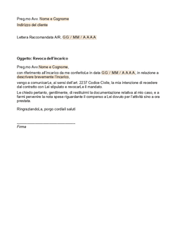 Lettera revoca avvocato fac simile